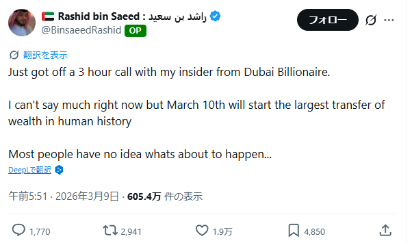 進行中だと気づく者は少ないだろう。ドバイの噂が真実なら、3月10日は偶然ではないのかもしれないな。